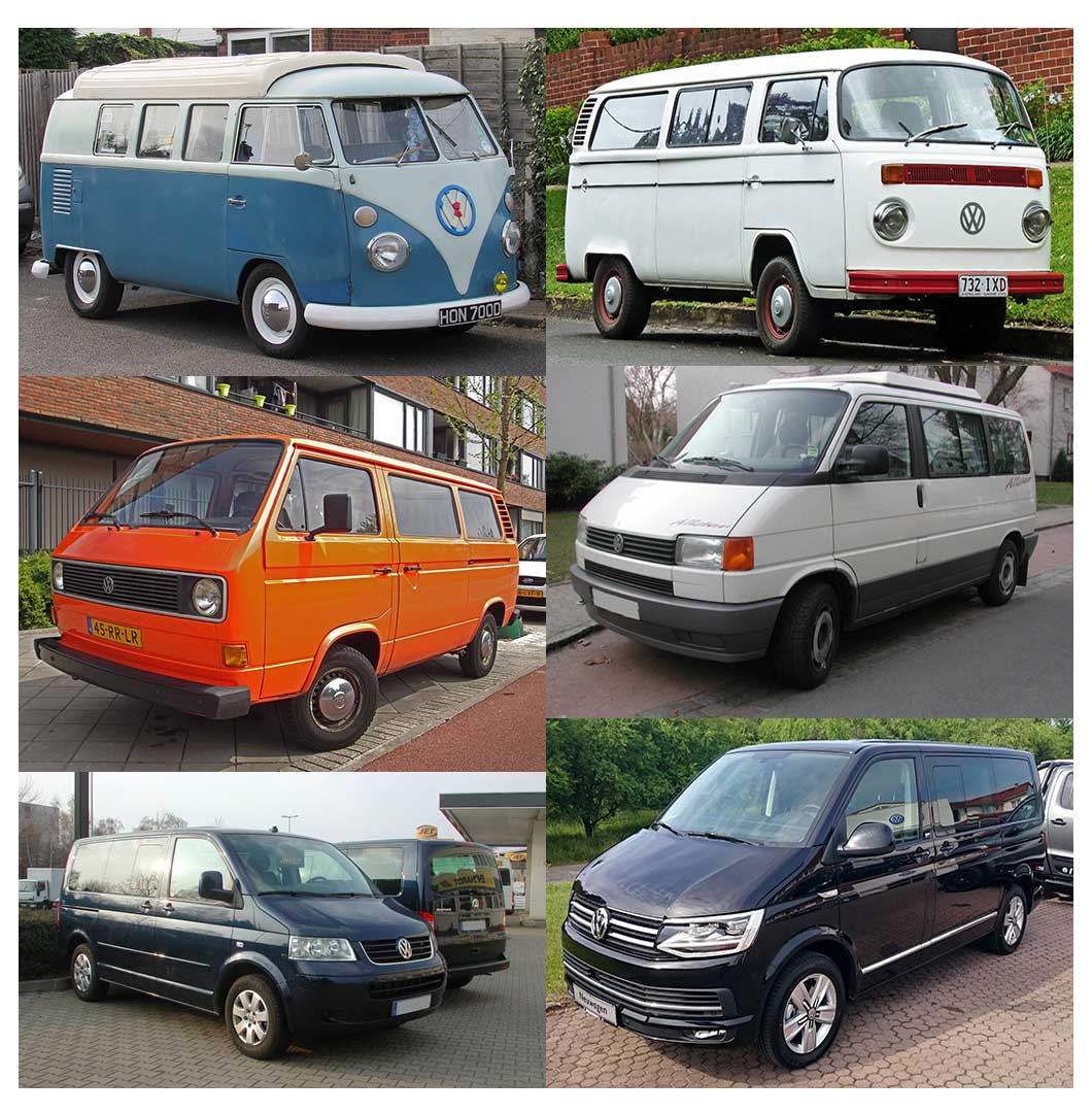 1967 年之前生产的VW Type 2早期版本使用分体式前挡风玻璃(绰号“Splitty”),它们的相对稀有性导致它们受到收藏家和爱好者的追捧,回顾性命名为T1。在美国爱好者中,通常以窗口的数量来指代不同的型号,目前的拍卖记录是一辆21窗巴士,价格为302,500 美元。