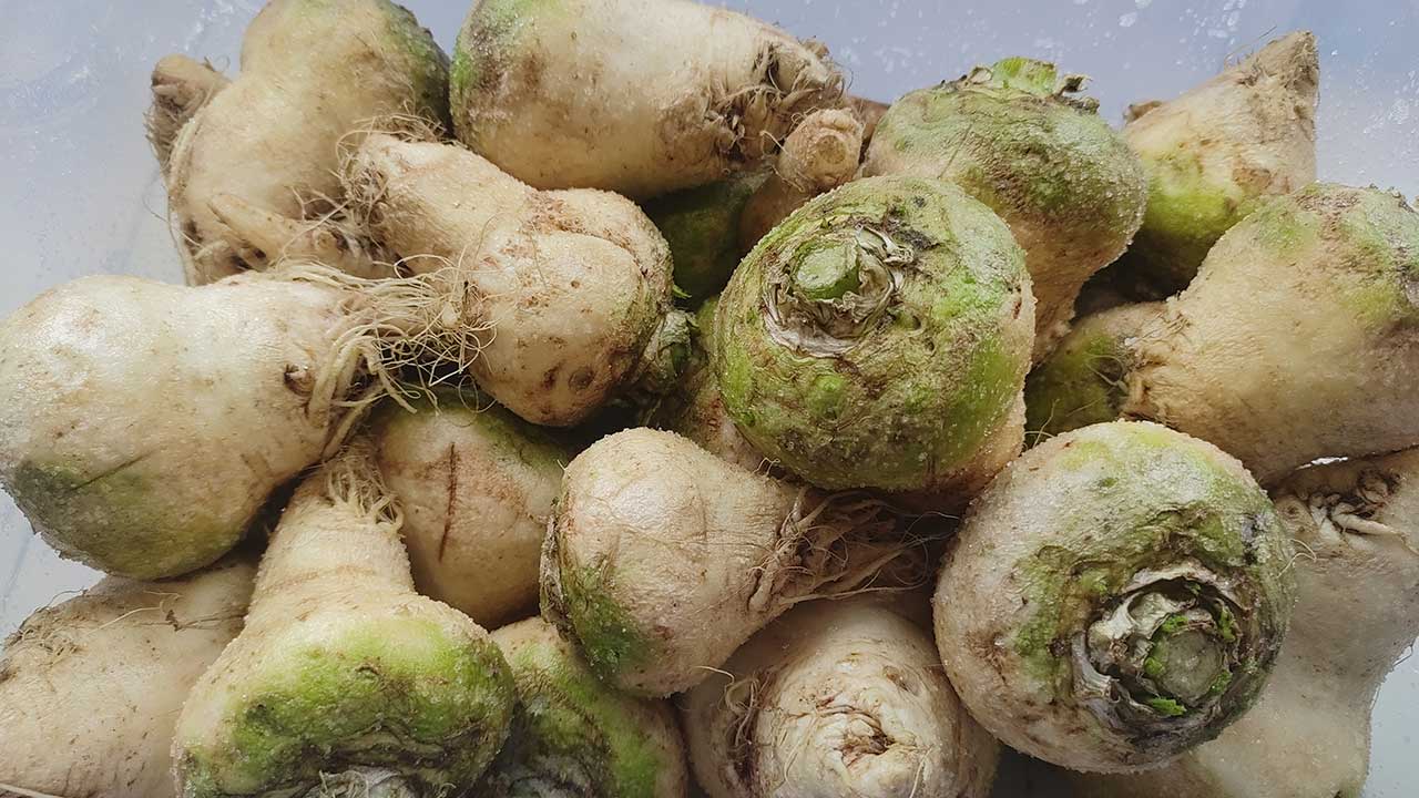 大头菜(芥菜疙瘩)是芥菜的一个变种,食用部位以块根为主,主要用作鲜拌菜和腌咸菜。