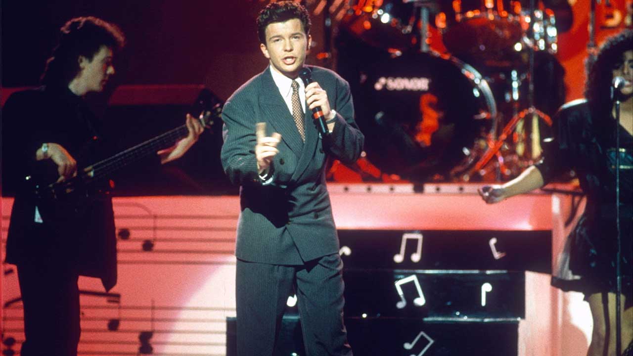 1988年,Rick Astley在伦敦全英音乐奖上表演“Never Gonna Give You Up”*