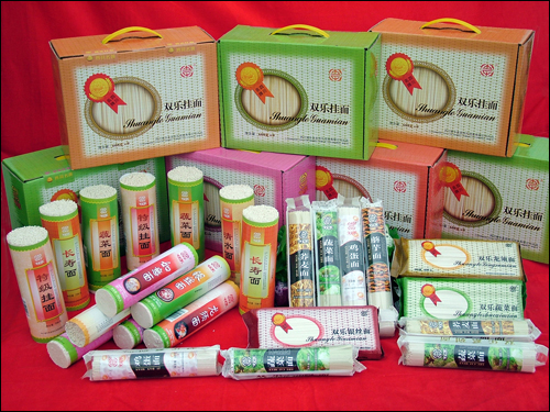 "双乐"牌系列挂面产品选用优质原料,配以不同辅料,在传统工艺基础上,运用现代工艺,注重从营养学角度进行科学配方,使产品具有"营养丰富、口感爽滑、条型光洁、回锅如初"的特点,以品质一流、包装精美、价格合理受到消费者的青睐。截至目前,公司与红旗、互惠、好又多、家乐福等省内外各大型超市建立了长期、稳定的400多个销售网点,产品呈现供不应求的局面,市场前景极为广阔。