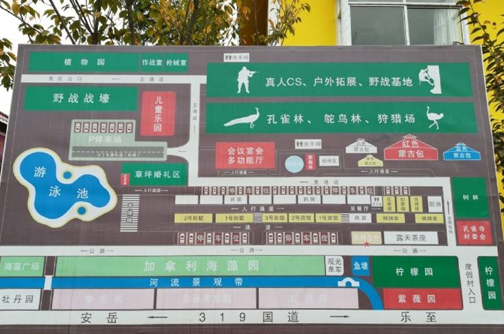 乐至花香休闲度假村位于资阳市乐至县“川中丘陵”林业科技示范基地入口处,国道319旁,距离县城仅7.5公里。当地人刘勇在政府的帮扶下,利用已建好的新农村联排别墅以及后山约200亩的土地,建设集民俗文化、特色娱乐等一体化的乡村旅游项目,打造出了春可赏花、夏可戏水、秋可观叶、冬可健身的“乐至后花园”。据乐至花香休闲度假村执行董事长刘勇介绍,该休闲度假村70余名职工大多是当地村民,村民与度假村签订房屋租赁合同,采取房租入股分红的方式,将自家房屋租给度假村,每个村民每年最高收益可达5万元。